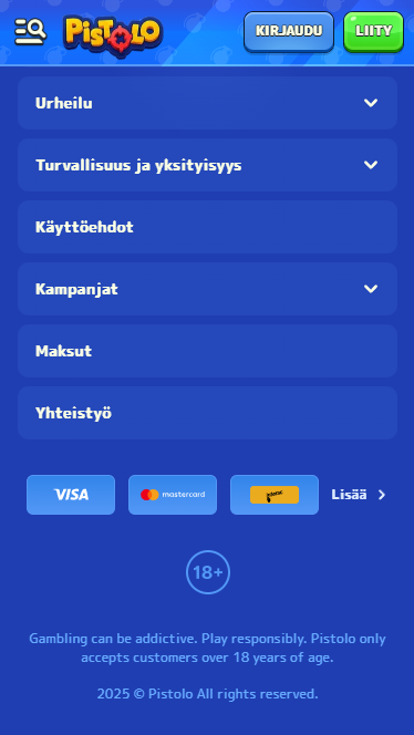 Pistolo kokoaa saman katon alle modernin nettikasinon ja täysiverisen vedonlyöntiosion. Painotus on helppokäyttöisessä käyttöliittymässä, nopeissa maksuissa ja säännöllisissä kampanjoissa suomalaisille pelaajille..