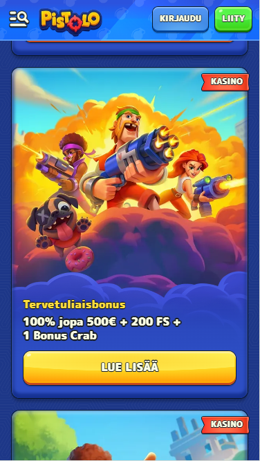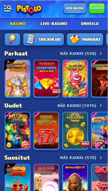 Pelit, slotit ja live-kasino Pistolo FI:ssä